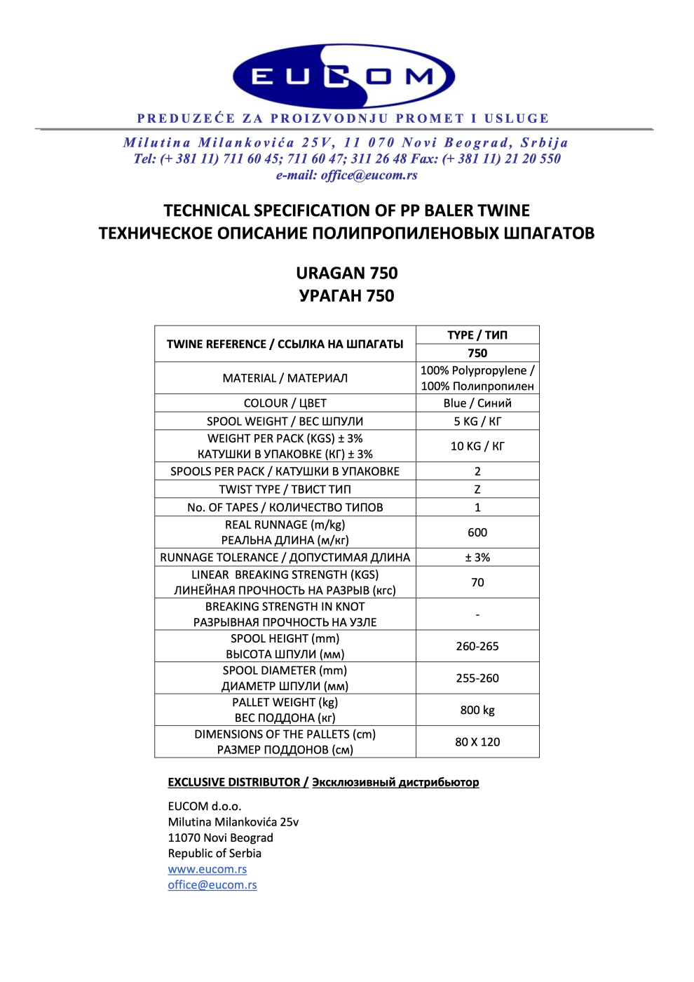 Шпагат сеновязальный URAGAN-600 (Сербия) для рулонных и тюковых пресс-подборщиков